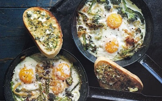 Serve the baked broccoli and parmesan eggs with slices of sourdough toast